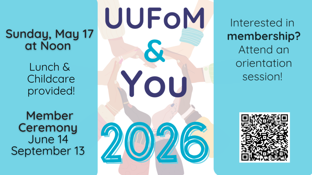 We would love to welcome our newcomers as members. If you are interested in joining, please let Wendy know at office@uufom.org. Welcome!